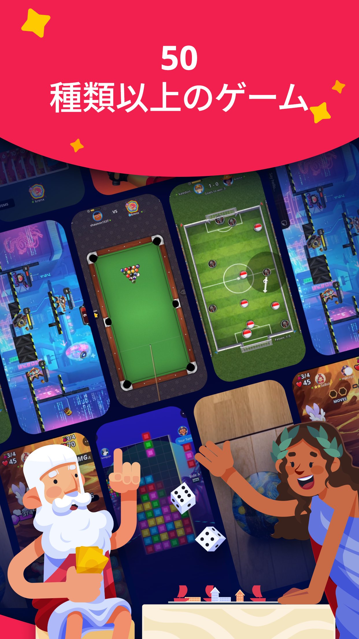 豊富なマルチプレイヤーゲーム:オーチョ(クレイジーエイト)8️⃣、ビリヤード🎱、カロム🥏など、50種類以上の人気のゲームが揃っているため、好きなゲームを楽しめます。戦略系、スポーツ、定番のボードゲームなどをお楽しみください。
