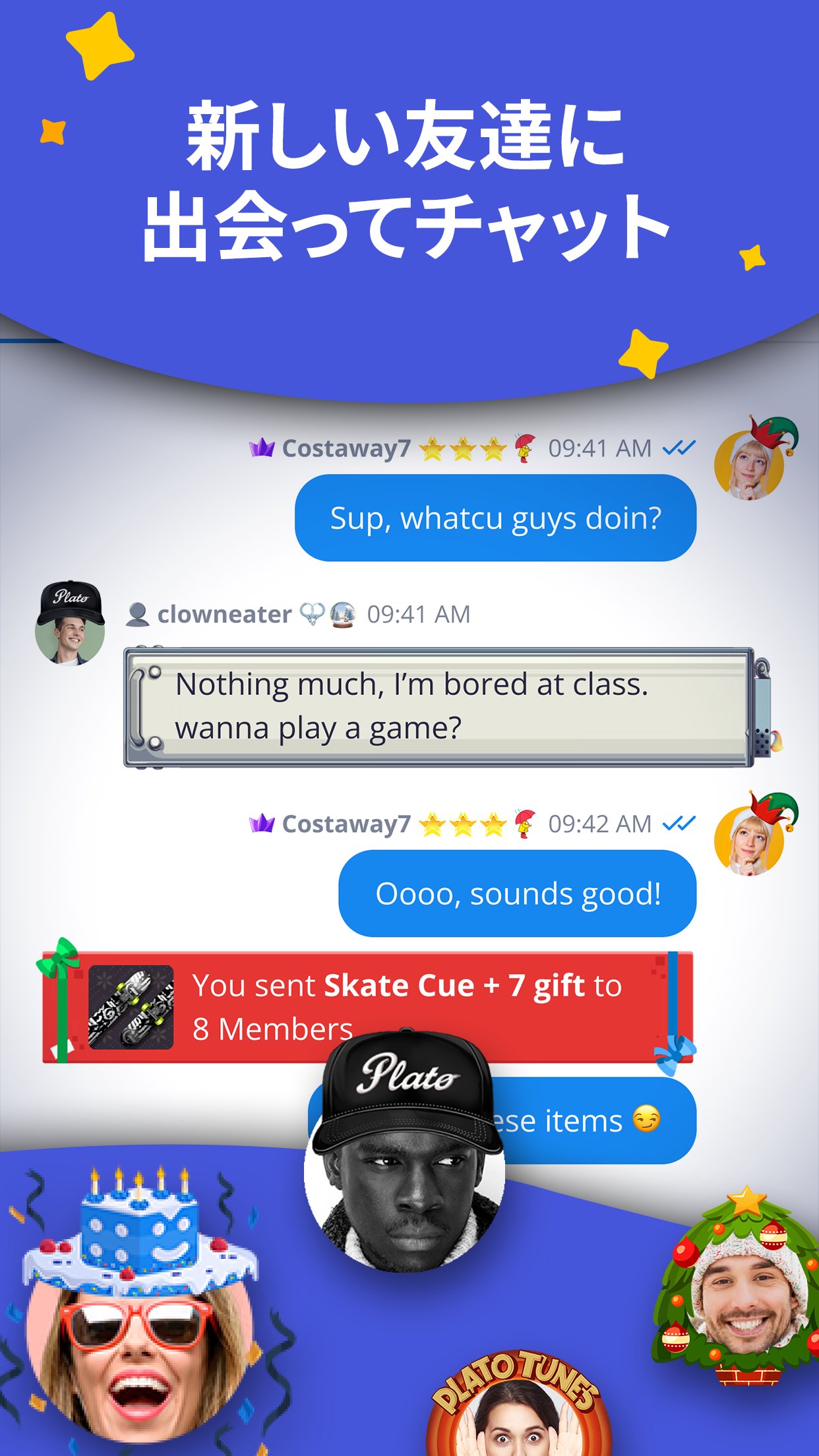 Platoへようこそ。Platoは、ゲームとチャットが融合した壮大なアプリです。50種類以上の面白いマルチプレイヤーゲームを友達と楽しみましょう。すべてのゲームにチャット機能が搭載されているため、仲間や新しい友達とゲームを楽しみながら交流することができます。