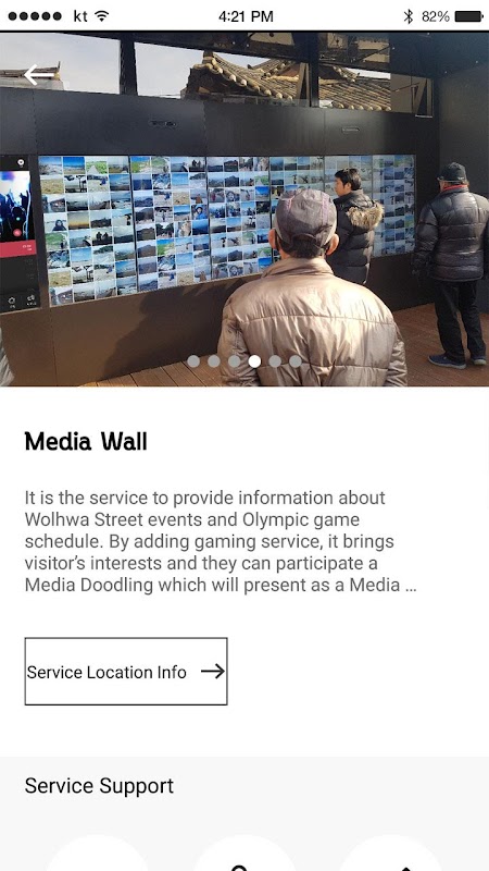 - スマートウォール:ウォルファストリートイベントとオリンピックの試合スケジュールに関する情報を提供するサービスです。ゲームサービスを追加することで、訪問者の関心が集まり、Media Doodlingに参加することができます。メディアDoodlingはメディアアートとして出品されます。