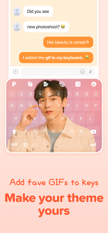 お気に入りの猫や犬、K-POP アイドルやキャラクターの写真や GIF をキーボードの背景に追加します。