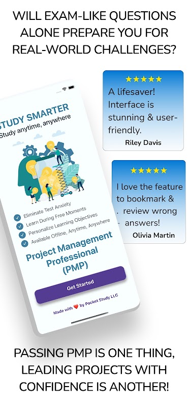 プロジェクトマネジメントプロフェッショナル(PMP)認定試験対策に、Pocket Study で自信を持って臨みましょう。Pocket Prep からインスピレーションを得たPocket Studyは、着実に世界最大のプロフェッショナル認定資格向けモバイル試験対策プロバイダーへと成長を続けています。