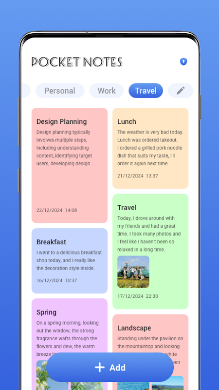 Pocket Notes は、インスピレーション、アイデア、ToDo リスト、人生の瞬間を簡単に記録できるように設計された、シンプルかつ強力なメモアプリです。旅行中、会議中、カフェ中など、Pocket Notes を使用すると、いつでもどこでも創造性を記録できるため、アイデアが消えることはありません。