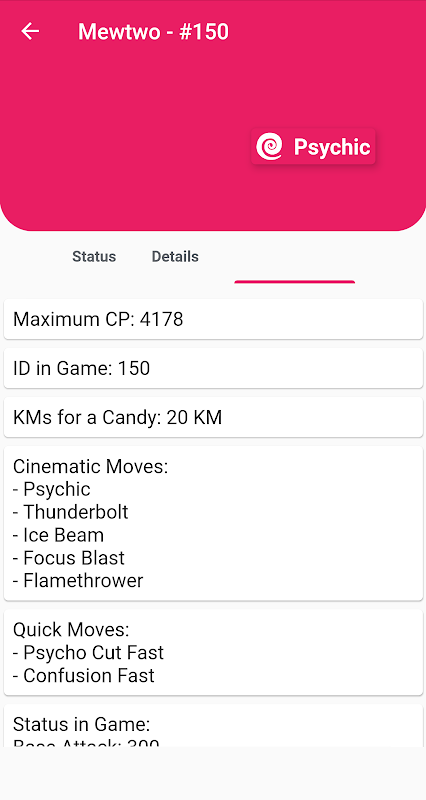 -ステータスと詳細。