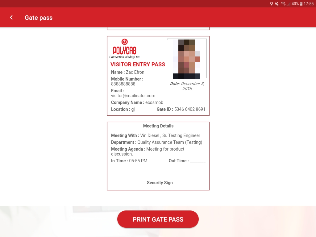 Time is Precious today. Say goodbye to that old logbooks and registers instead opt for super sleek and impressive interface design visitor management system to schedule meetings, receive instant notifications and QR codes. Smart business card capture intellectual system. User-friendly record keeping system keeping your records paperless makes a memorable first impression on your visitors. Saves money & time, improves productivity, enhances the company's security.
