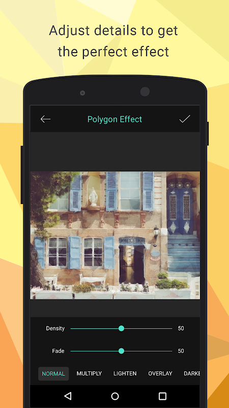 単にあなたのデバイスのギャラリーから写真を選択して、楽しく始めましょう。様々なスライダーと効果のオプションで遊んで設定が完了したら、それを保存し、それを共有!多角形効果を使用すると、ポリゴンアートのトレンドの一部であるといくつかの簡単な手順であなたの友人を感動させることができます。ナビゲートするための複雑な設定はありませんとメニューありません。ポリゴン効果があなたの創造性のロックを解除するとあなたの指先に文字通りです。