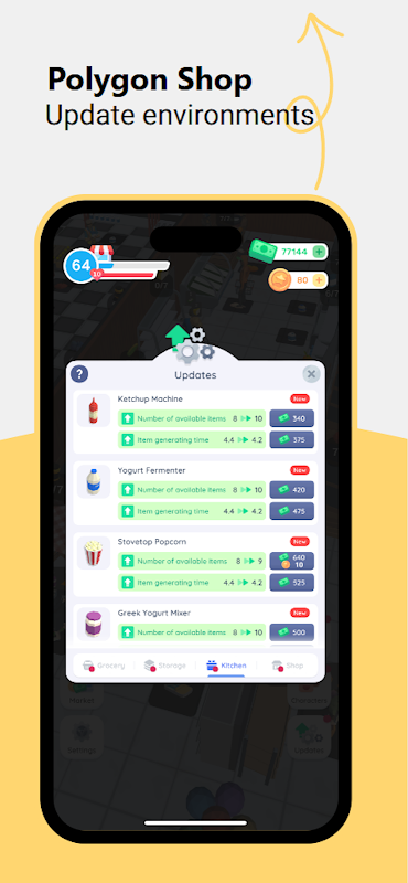 Polygon Shopは、シムズ系とアーケード系放置系ゲームを融合させた、これまでにない新しいゲームプレイ体験を提供します。縦向き表示に対応しているため、ミニゲームのようにスマートフォンを回転させることなくプレイでき、どこにいてもゲームを楽しむことができます。
