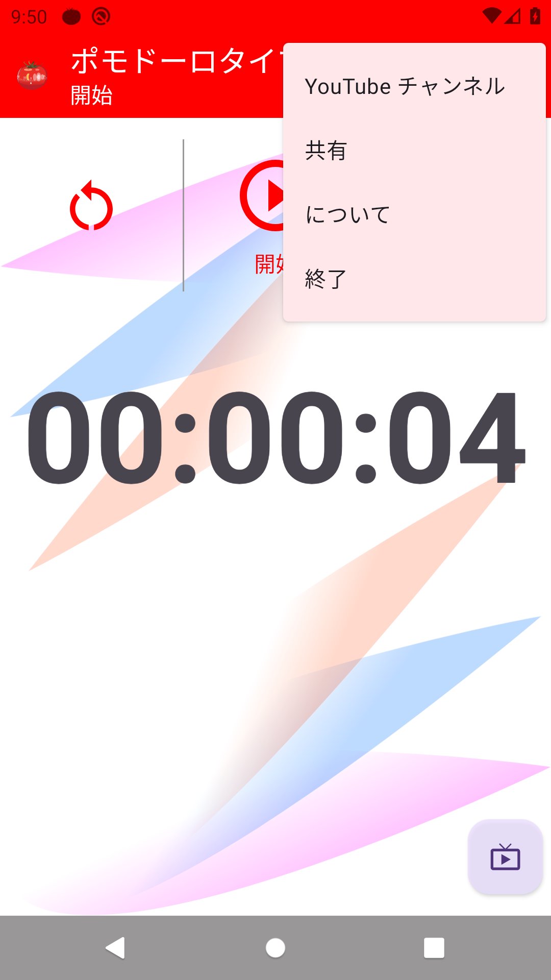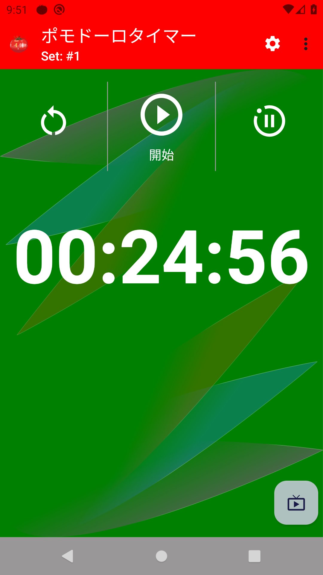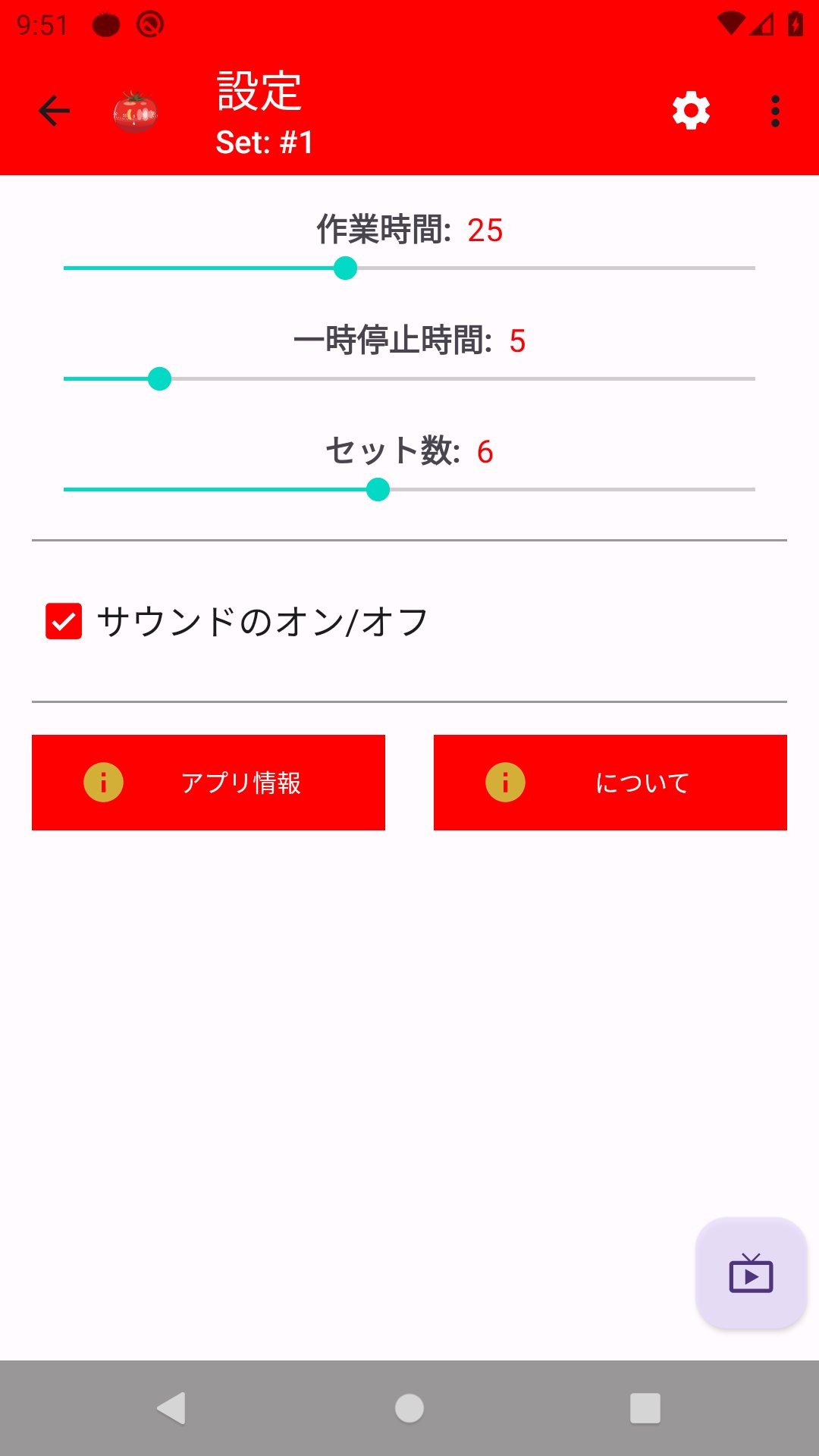 作業セット、アラート、スクリーンのウェイク機能付きのポモドーロタイマーアプリ