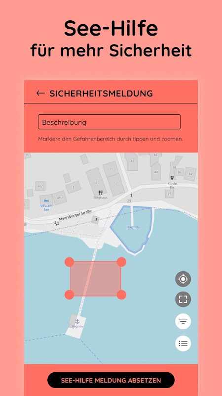 セキュリティ-緊急、緊急、セキュリティメッセージ!安全が最優先されるため、特に水上で。ユニークな海全体のセーフティネットを備えたポンポメラは、急性の危険な状況に備え、お住まいの地域の潜在的なリスクに関する予防情報を提供します。シーヘルプ機能は、ボーデン湖のコミュニティからの安全メッセージに関する情報を提供し、ボート乗りの間の直接的なヘルプを可能にします。これは、お互いに存在する国境を越えた操船術です。