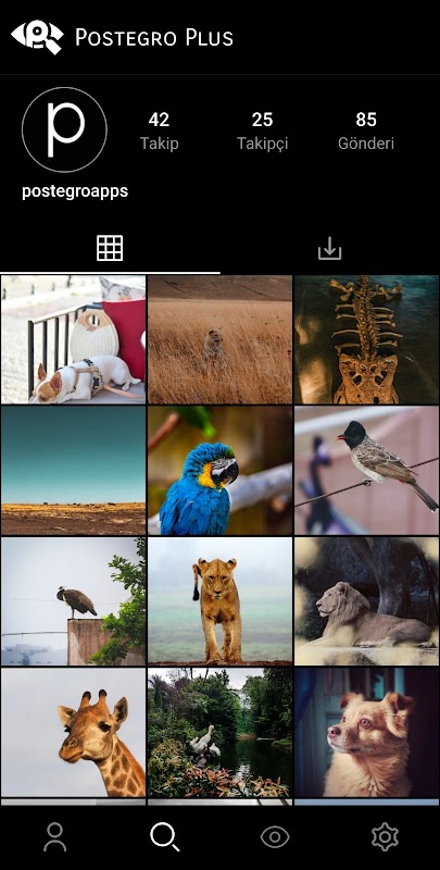 Postegro Plus ile herhangi bir profilini görüntüleyebilir, indirebilir ve Full HD olarak