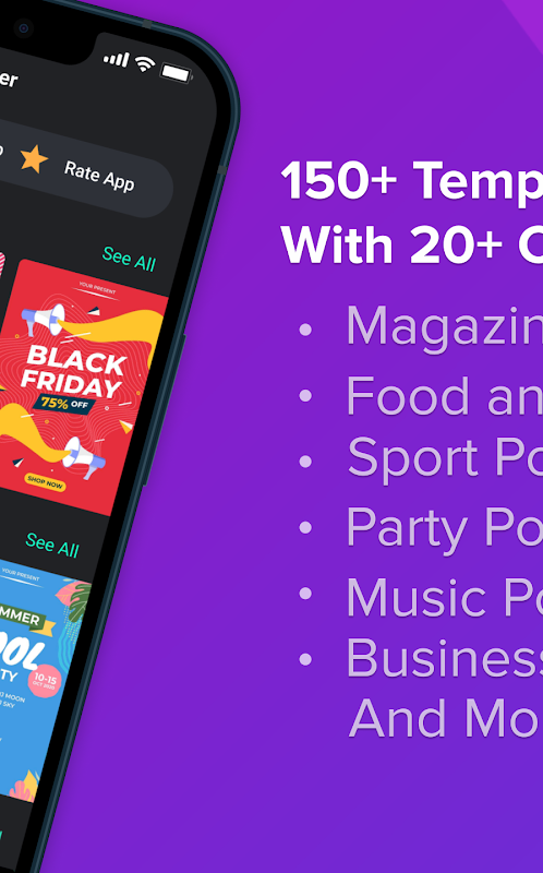 This Free Flyer Maker, Poster Maker, Banner Graphic Design app allows you to design stunning flyers & posters with easy-to-use templates. Create amazing flyers & posters without special design skills. Create engaging, high converting posters with professional Flyer Designer and Poster Flyer Maker app.