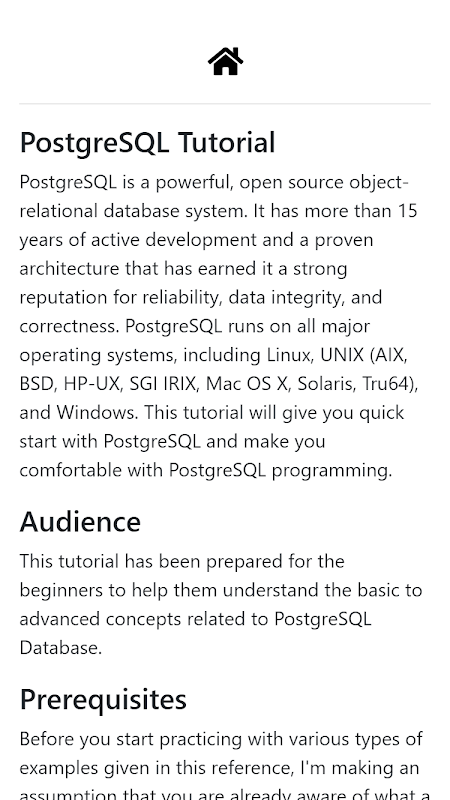 PostgreSQL is a powerful, open source object-relational database system. It has more than 15 years of active development and a proven architecture that has earned it a strong reputation for reliability, data integrity, and correctness. PostgreSQL runs on all major operating systems, including Linux, UNIX (AIX, BSD, HP-UX, SGI IRIX, Mac OS X, Solaris, Tru64), and Windows. This tutorial will give you quick start with PostgreSQL and make you comfortable with PostgreSQL programming.
