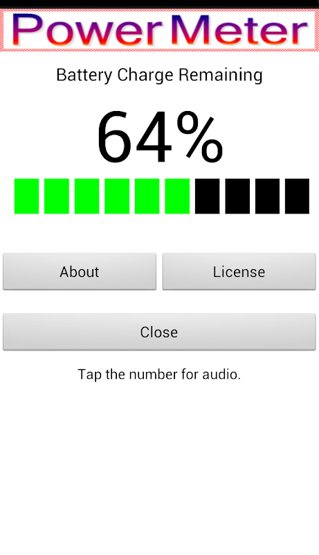 電源メーターは、パーセントでスマートフォンのバッテリーの充電を表示し、番号をタップするとそれを大声で話します。