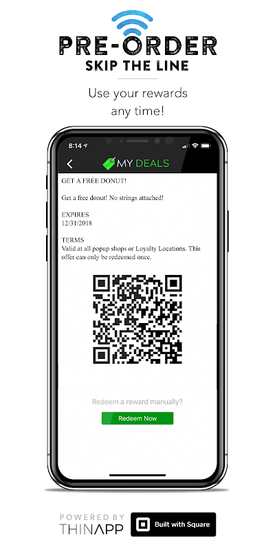 Pre-Order is powered by Square and allows you to order any item(s) from the Menu, choose your options - and a pickup time and pay - all from the App.
