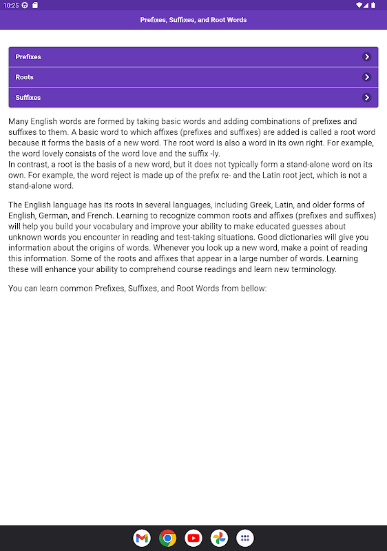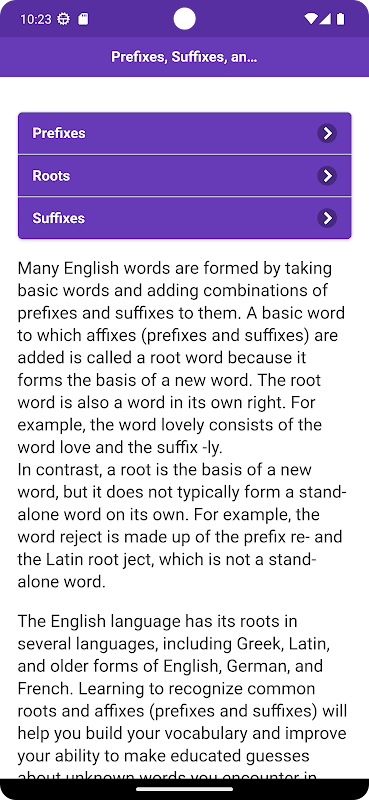 この軽量のAndroidアプリから、一般的なプレフィックス、サフィックス、およびルートワードを学習できます。