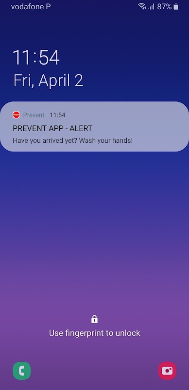 Preventアプリは、次のような汚染の防止に役立つ通知を送信します。
