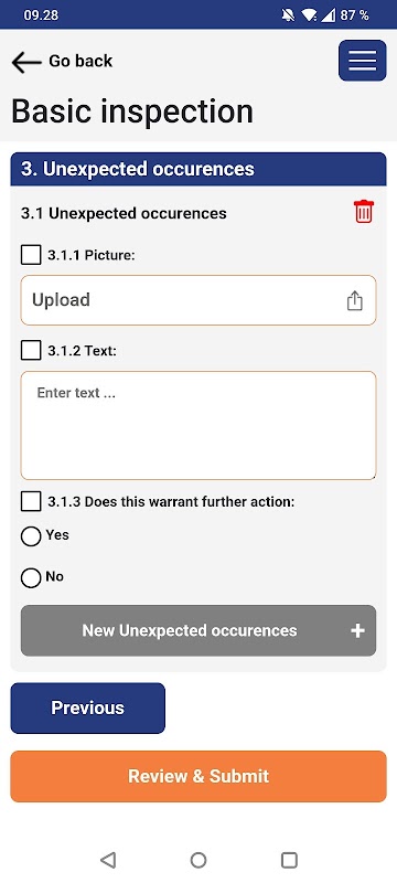 アプリでは、検査を迅速かつ簡単に実行できます。検査フォームは、検査中のニーズに応じて非常に動的になるように構築できます。アプリで直接写真を撮ります。検査をドラフトとして保存し、別のデバイスに切り替えます。