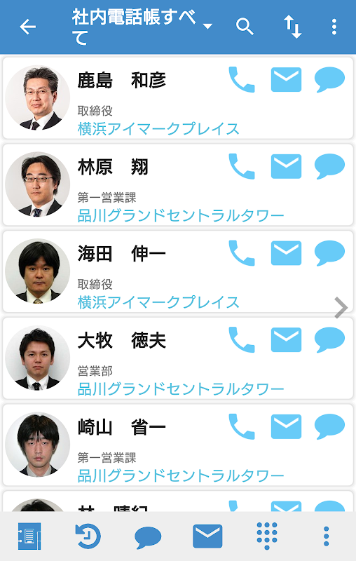 (本アプリに表示された電話帳から電話発信したり、電話着信時に発信者の情報(名前、企業名、部署名等)を確認することができます)