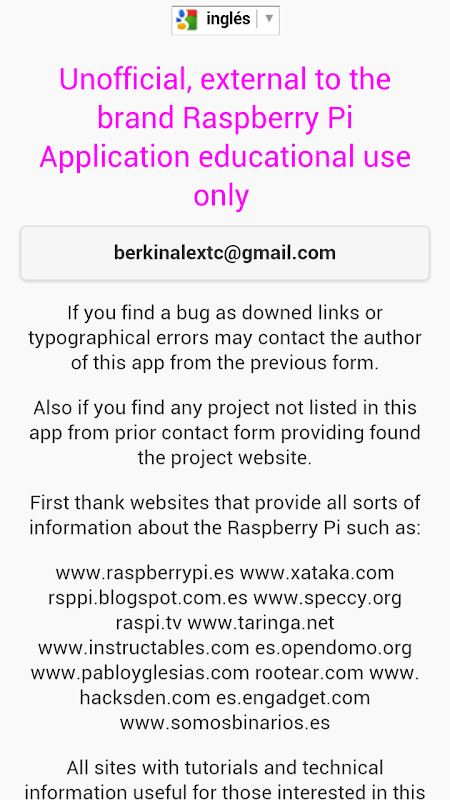 Destacar que esta Aplicación NO es oficial, por lo tanto es externa a la marca Raspberry Pi y para uso solamente con fines educativos y personales.