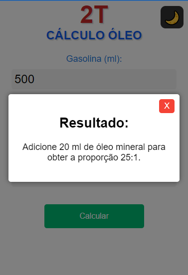 2 ストローク エンジンのオイル/ガソリン混合気の計算を支援するアプリケーション。