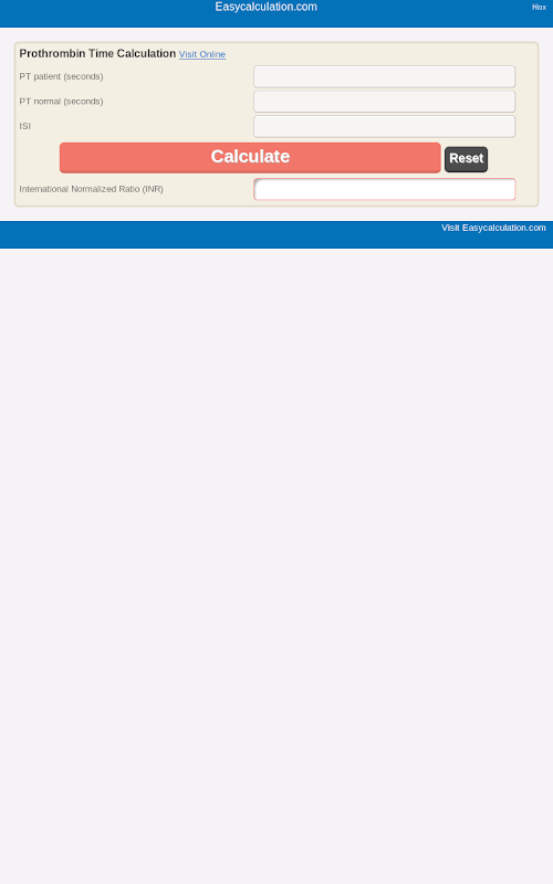Prothrombin Time Calculator to calculate the actual time taken for an anticoagulated sample of blood to clot after added to a thromboplastin reagent.