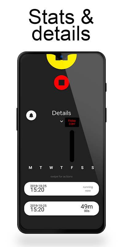 - Pomodoro mode: start a temporized activity which will automatically stop after a predefined time and alert the user with a ring