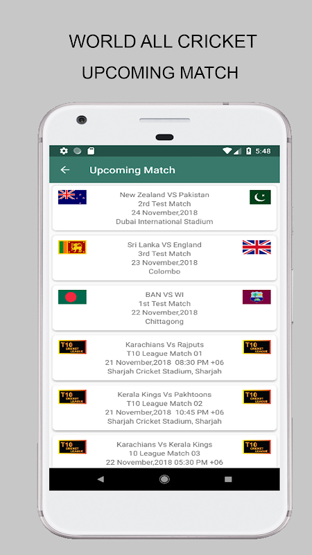 ***** टी 10 2018 मैच अनुसूची और फिक्स्चर