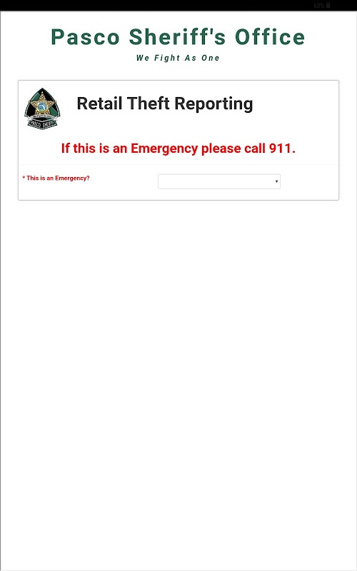 This app can be used by retailers in Pasco County to report incidents. This is not an alternative to 911, In case of emergency, please call 911 immediately.