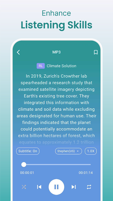 - 統合された継続的な MP3 プレーヤーでリスニングスキルを向上させます