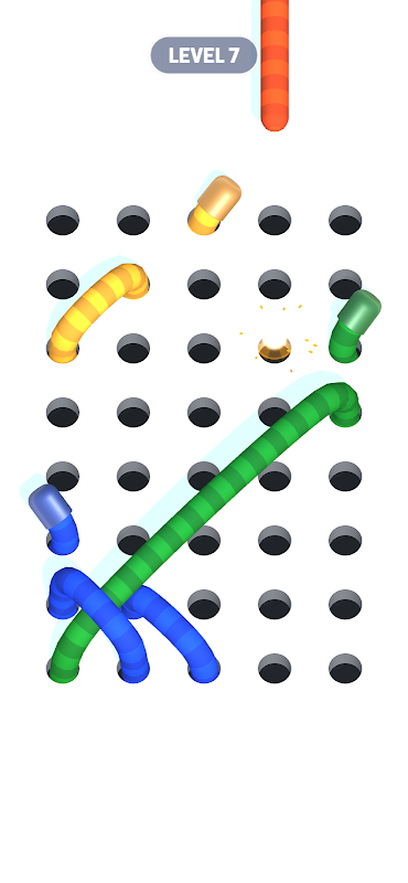 穴にタンギングされているロープを正しい順序で引っ張ります。ロープを 1 つずつほどいてみてください!美しい創造的なパズル