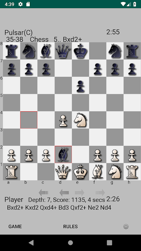Pulsarエンジンは、レベルと6つのバリアントを備えたチェスをプレイできます。また、カスパロフ、カールセン、モーフィといった古典的および現代的なゲームコレクションも含まれています。オフラインでも動作します。私は1998年にPulsarの開発を開始し、2002年から2009年にかけて、Pulsarが認識するバリアントをプレイできるように学習させました。2014年にモバイル向けに初めてリリースされ、2019年にはAndroid向けにもリリースされました。バリアントは、チェス960、クレイジーハウス、アトミック、ルーザーズ、ギブアウェイ(別名スーサイド - 駒を失うことが目的)、スリーチェックです。Pulsarは、クローズドポジションよりも機動性とオープンプレイを重視します。バリアントごとに独自のスタイルがあります。