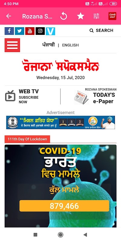すべてのオンラインニュースWebサイトを備えた1つのパンジャブ語新聞アプリ