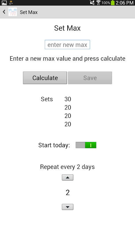 Push100 is a simple tool that helps you calculate and log your pushup progress toward your goal of 100 pushups. Based on the "Double Max" method published in the book The Ultimate Guide To Pushups by David Nordmark.