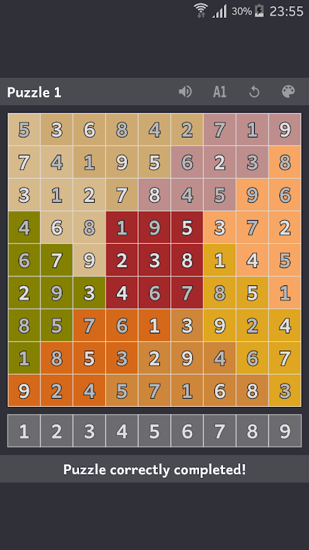 唯一の支援は、グリッドがいっぱいになり、アプリがパズルが正しく完了したかどうかを通知することです。