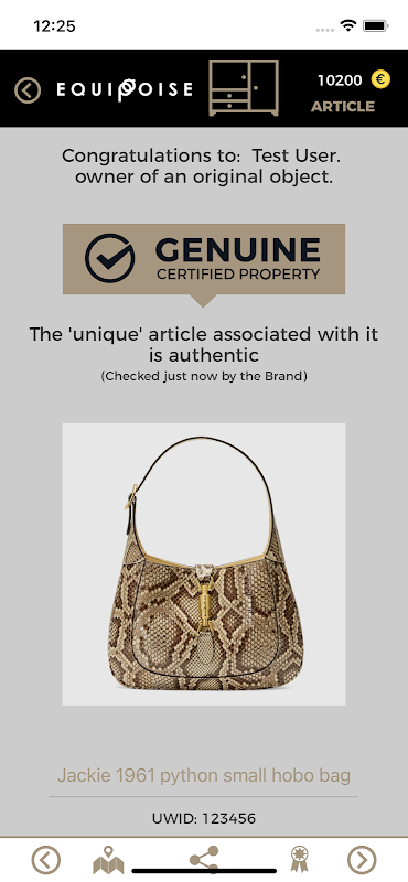 Una volta acquistato l’oggetto sarà possibile verificare personalmente l’autenticità dell’oggetto tramite la lettura del qr-code (o del tag NFC) sull’etichetta.