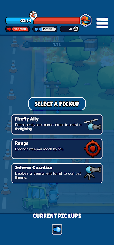 - アップグレードとパワーアップ:消火して燃えさしを集め、永続的なアップグレードをアンロックしたり、ゲーム内ブーストを獲得して武器を強化したりできます。