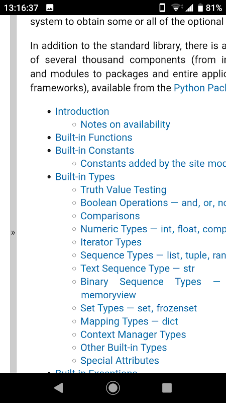 Python 3.7.4オフラインドキュメント-Androidバージョン