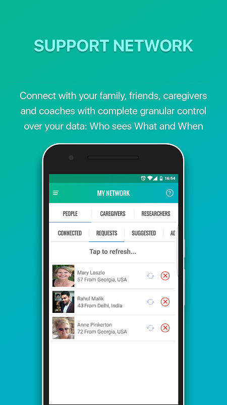 友達、家族、介護者、コーチからサポートを受けましょう。あなたの健康的な行動、傾向および慢性的な病気の管理についての証拠に基づいたフィードバックを得てください。研究者は警告や通知を送信して、あなたがやるべきことや測定すべきこと、予防的な最善の医療行為についてあなたに思い出させることができます。