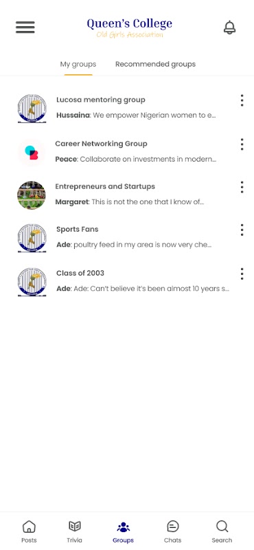 Queen College Old Girls Association のメンバー向けのネットワーク モバイル アプリ