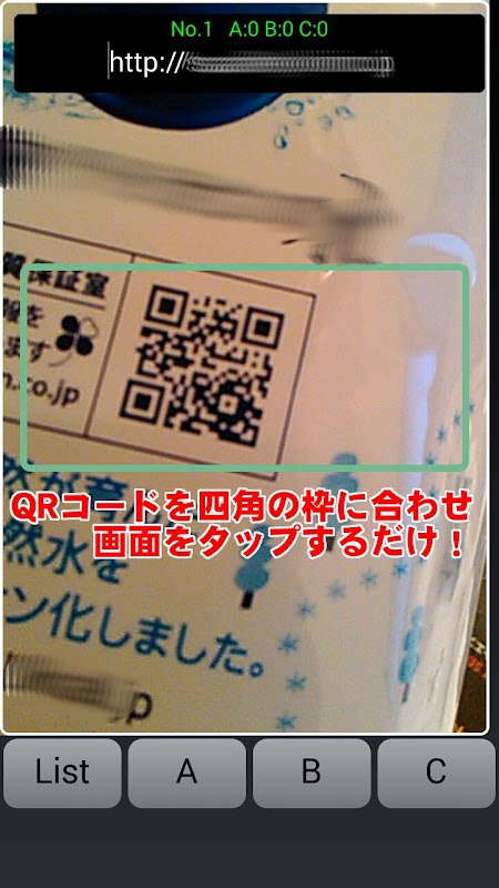 読み込みたいコードを白い枠の中におさめて、画面上をタップします。