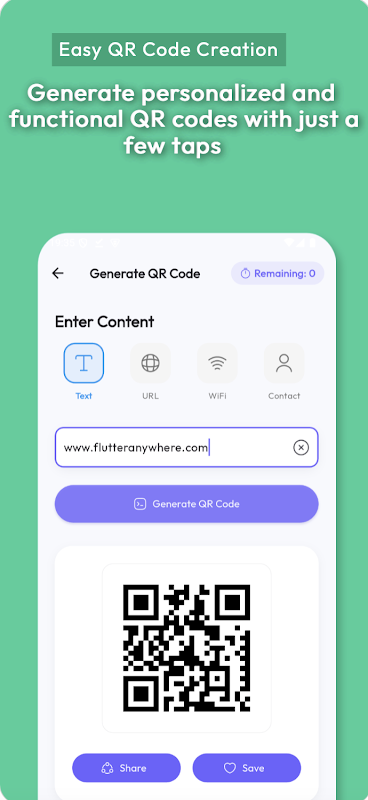 簡単な QR コード作成: 数回タップするだけで、パーソナライズされた機能的な QR コードを生成します。