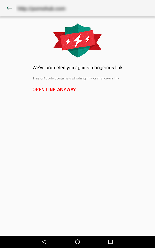 あなたはQRコードをスキャンし、それが危険なリンクが含まれているか、悪意のあるWebサイトへのご案内しようとした瞬間に警告を取得します。