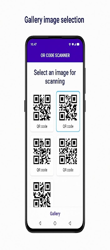 カメラを使ってQRコードを瞬時にスキャンしたり、ギャラリーから画像をアップロードして保存したコードをスキャンしたりできます。アプリは画像からQRコードまたはバーコードを自動的に検出します。
