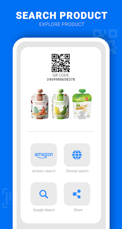 - QRコードスキャナー:製品のQRコードをスキャンしてそれを知り、Web上でそれらのバーコード結果を簡単に検索します。