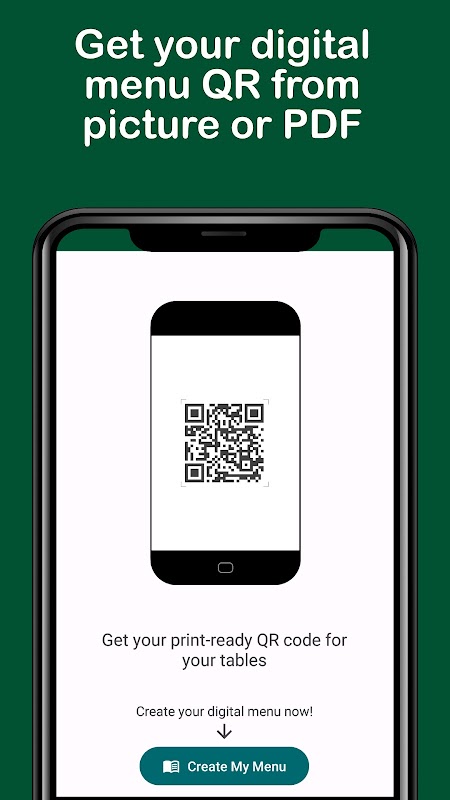 La manera rápida y fácil de crear un Menú Digital QR. Con la aplicación de Generador de Menú Digital QR, puede llevar su restaurante, cafetería, pub y bar o cualquier negocio al mundo digital con un menú QR desde un archivo PDF o imagen. Esta aplicación proporcionará la manera más fácil de administrar su menú. Digitaliza gratis la carta de tu restaurante, bar o cafetería con Digital Menu App y permite a tus clientes consultar tu carta siempre actualizada mediante un código QR o con un enlace web.