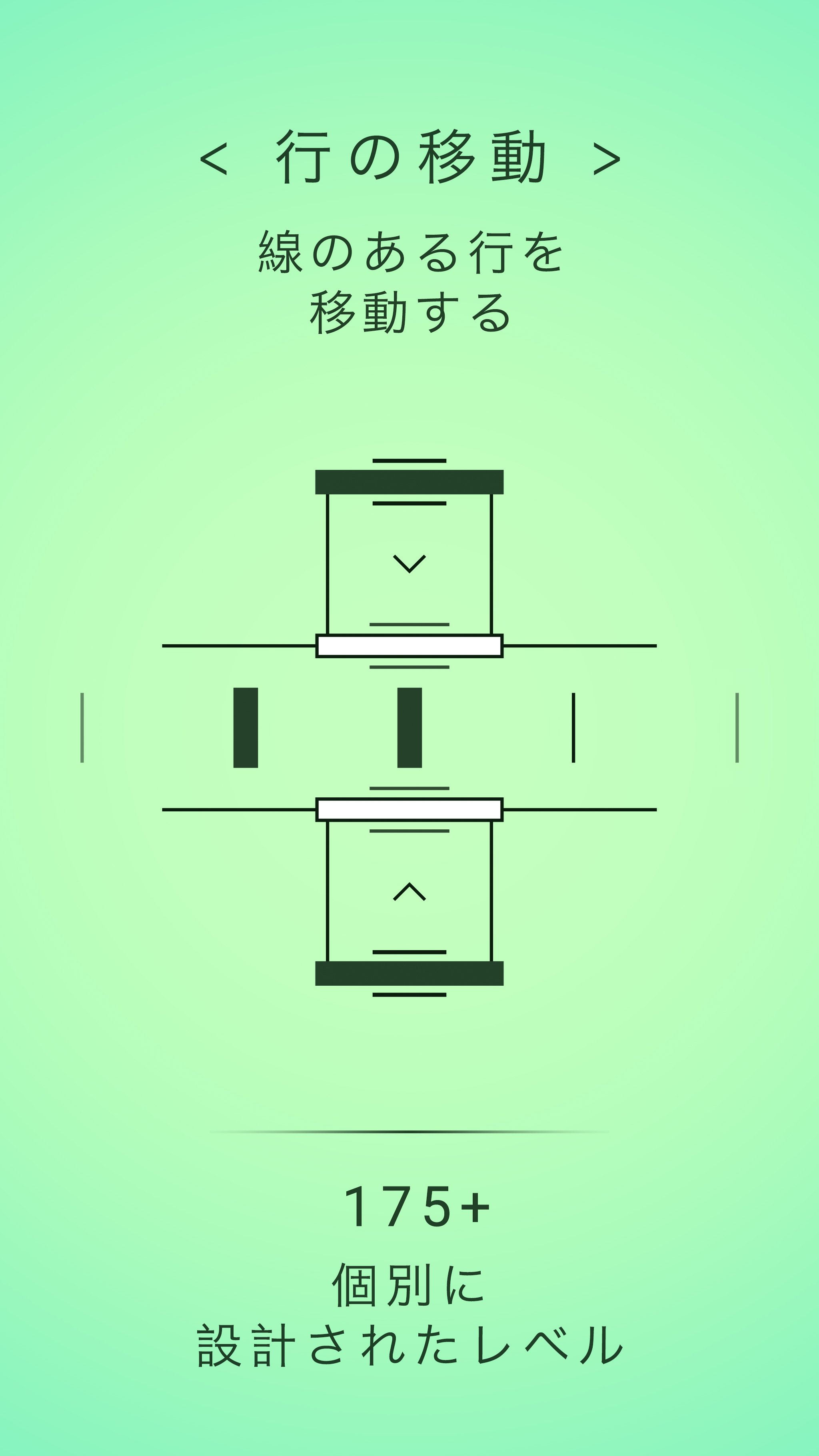 セルを介して線を移動し、特定のスロットに配置します。回転、移動、プッシュ、テレポートしたり、他のゲームツールを使って楽しくパズルを解きます。
