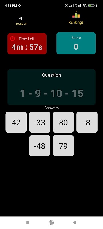 クイズ数学は、制限時間内に無制限に算数問題を解けるシンプルな算数クイズゲームです。正解が早ければ早いほど、より多くのポイントを獲得できます。正解ごとに3ポイントが付与されます。ゲームオーバーごとに、自分のスコアと国名を入力してスコアを送信し、ゲームスコアランキングに表示させることができます。