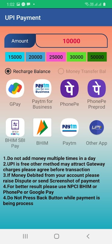 すべてのタイプのリチャージと請求書支払いのためのクイックペイアプリケーション