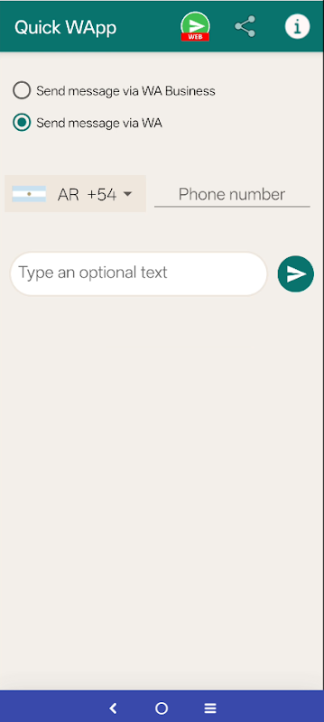 - Quick WApp は、連絡先にメッセージを保存せずに、任意の番号にメッセージを送信できるツールです。