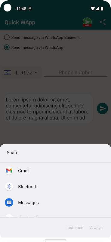 - メッセージを送信するアプリを選択します (WhatsApp または WhatsApp Business)。