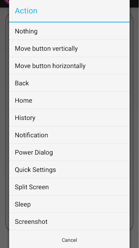 センサーやオーバーレイボタンで「戻る」などのシステム機能を発動させます。他にも「スリープ・スクリーンショット・通知を開く・画面分割」などのアクションを発動。